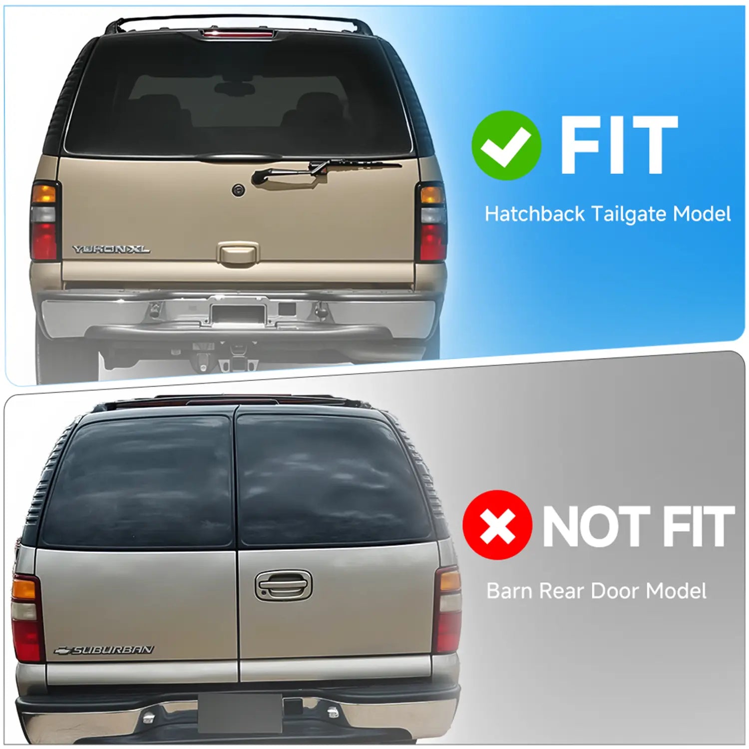 • Note: Only fit models with tailgate doors!