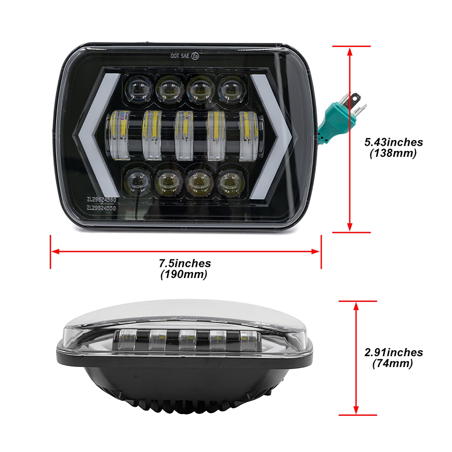 Phare carré à LED Switchback 7X6 avec clignotant DRL