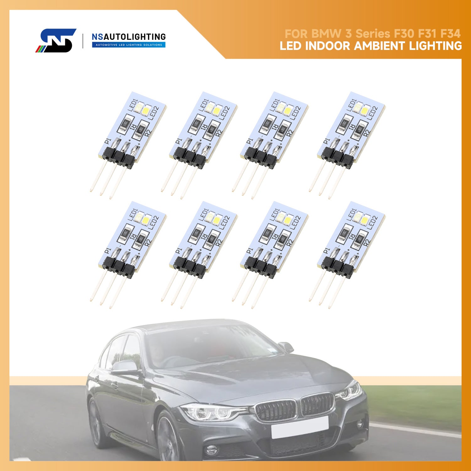Lot de 8 modules d'éclairage d'ambiance LED pour BMW Série 3 F30 F31 F34 LCI