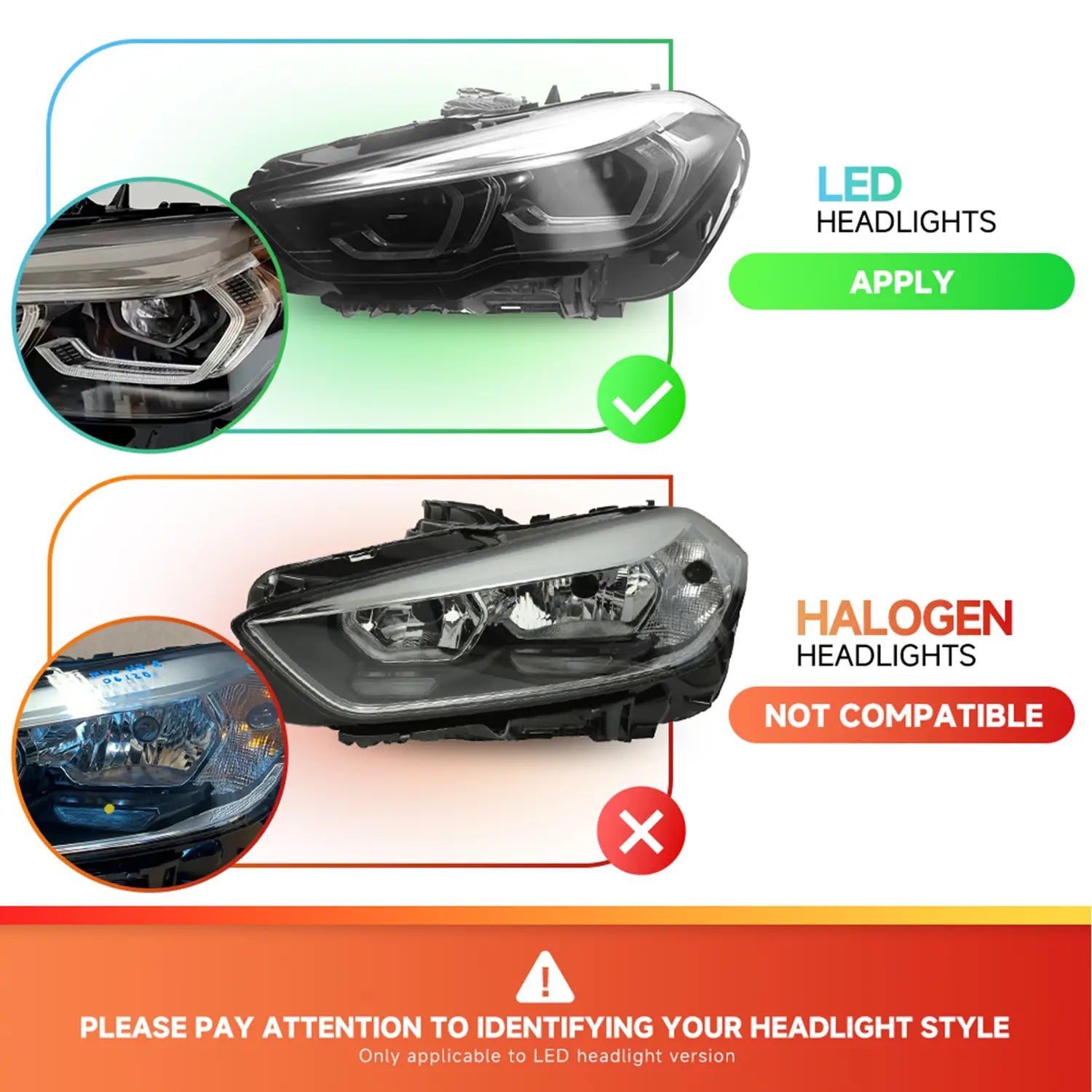 • Note: Only fit models with LED headlights!