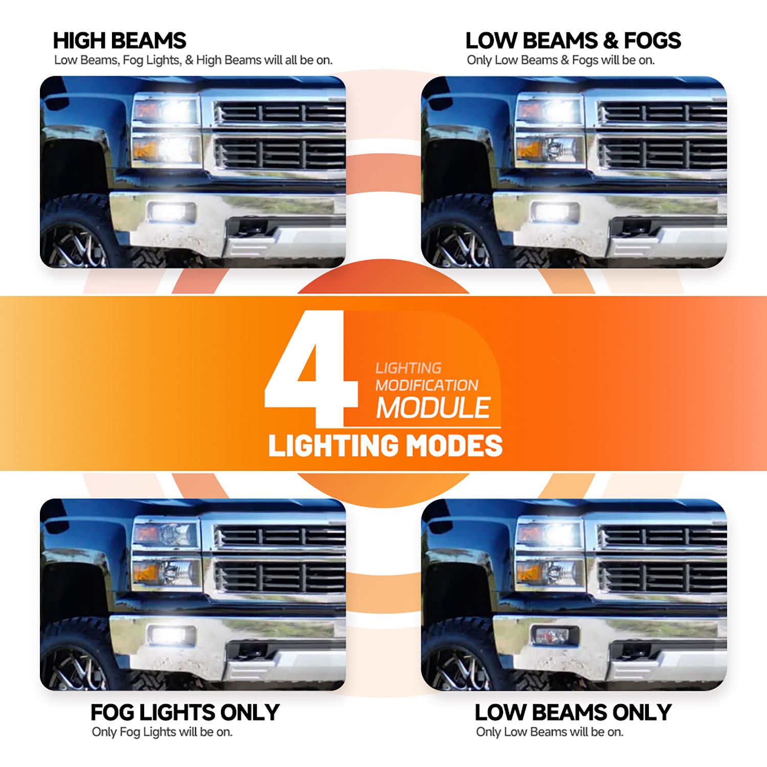 Adaptateur de faisceau de feux antibrouillard toujours allumés, tous les feux Mod pour Chevrolet Silverado 1500, 2500HD, 3500HD, etc. 2014-2023.