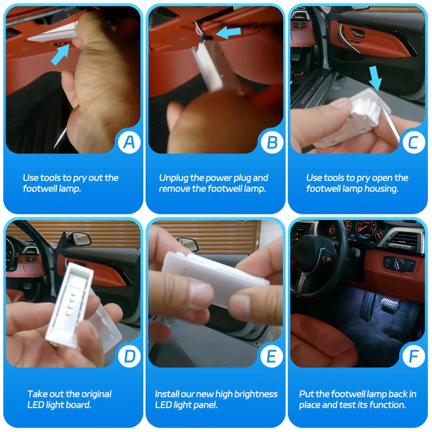 2PCS LED BMW Interior Ambient Footwell Light Replacement Circuit Boards