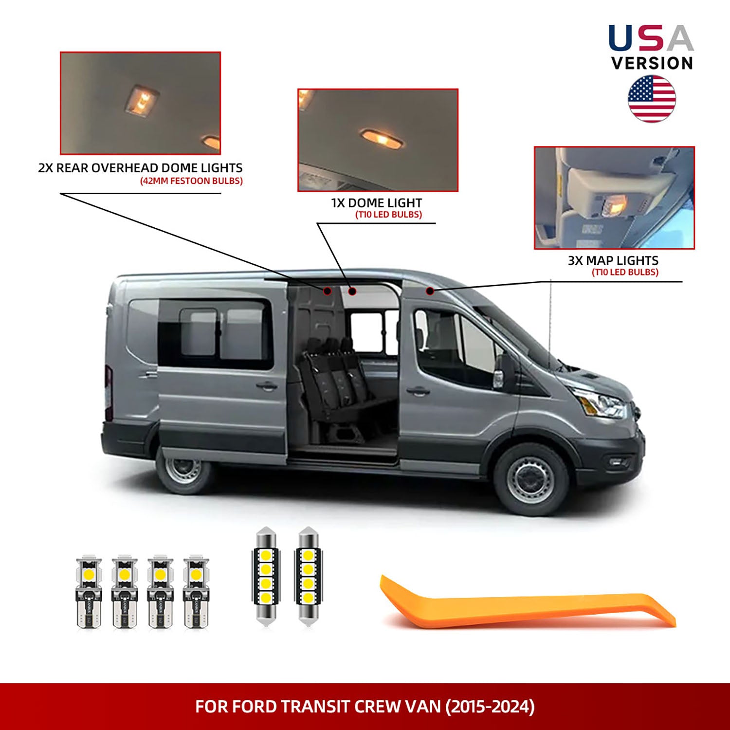 LED Interior Light Kit For 2015-2024 Ford Transit Crew Van