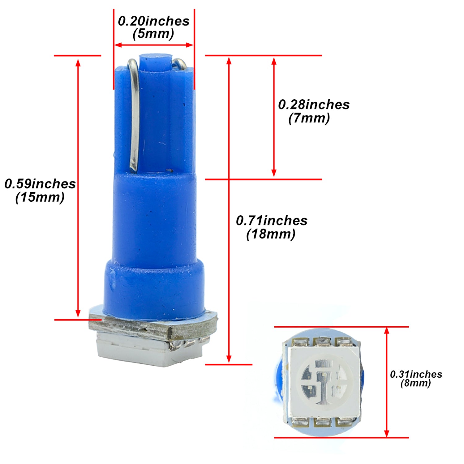 T5 Blue LED Dashboard Instrument Panel Light Bulbs For Peugeot 206, Citroen C5, etc.